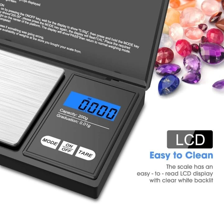 ترازو دیجیتال 500 گرمی با دقت یک صدم گرم ,دارای قابلیت صفر کردن وزن دارای واحدهای مختلف اندازه گیری مانند :g, oz, ozt, dwt, tl,gn,ct دارای صفحه نمایش با نور آبی