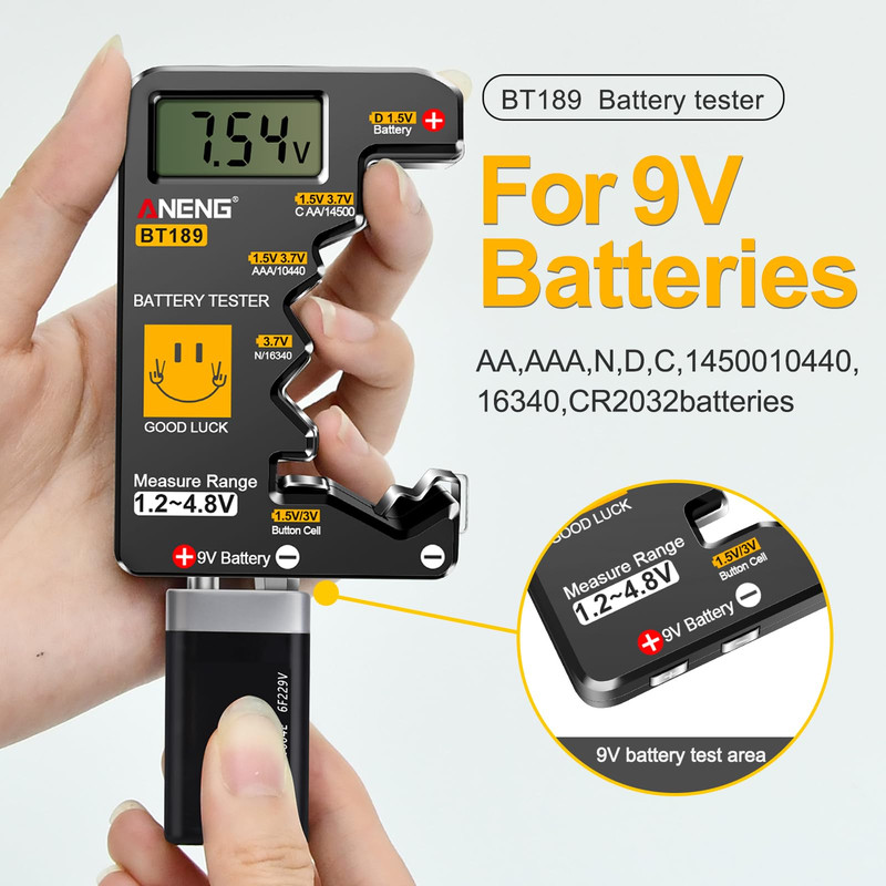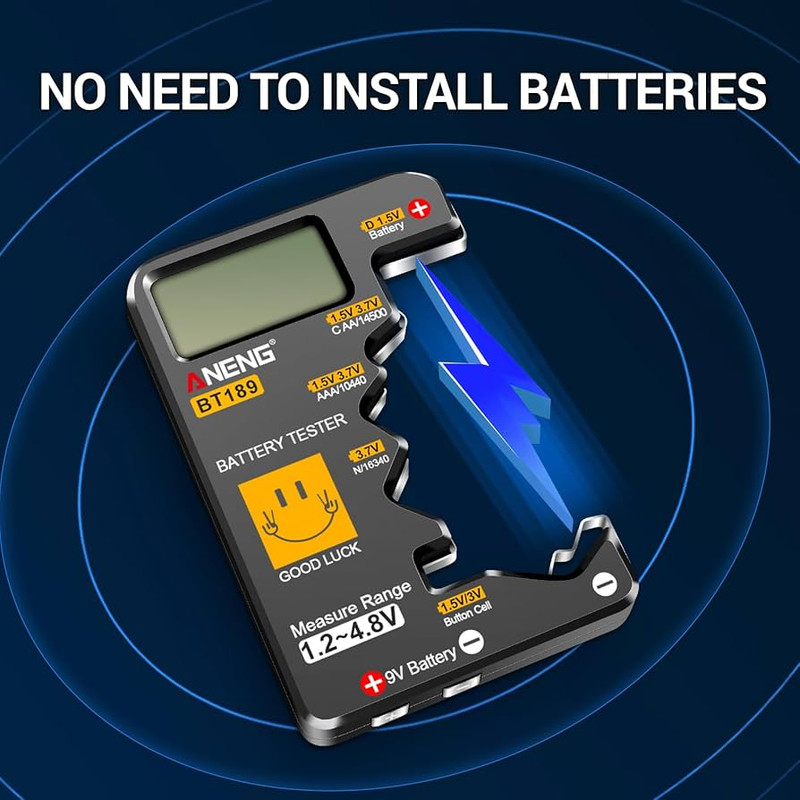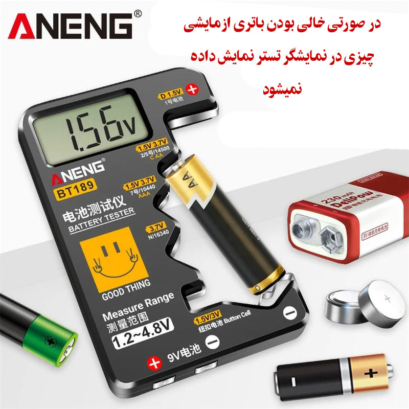 در صورت خالی بودن باتری ازمایشی چیزی در نمایشگر تستر نمایش داده نمیشود باتری های :N, D, C, AA, AAA.۱۴۵۰۰, ۱۰۴۴۰, ۱۶۳۴۰, CR۲۰۳۲, ۹V