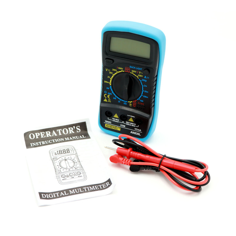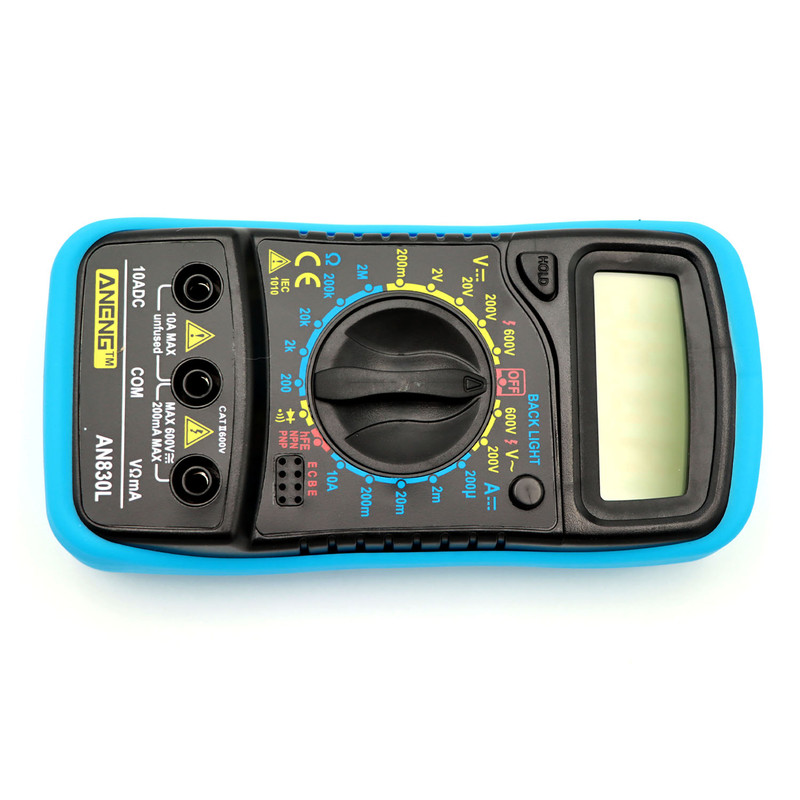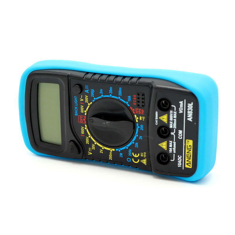 مولتی متر دستگاهی برای اندازه گیری چندین کمیت الکتریکی مانند: ولتاژ، جریان، مقاومت الکتریکی، ظرفیت خازنی و ... است که میتونید با اون سلامت یا مشخصات قطعات الکتریکی یا الکترونیکی رو مشخص کنید. مولتی متر یک ابزار کاربردی برای مهندسین برق و الکترونیک هست. این مولتی متر توسط سیم های قرمز و مشکی ( Prob ) کمیت های الکتریکی رو اندازه گیری میکنه و نتیجه اندازه گیری رو بر روی صفحه نمایش نشون میده. شما میتونید توسط سلکتور ( دکمه چرخنده که روی دستگاه قرار داره ) رنج اندازه گیری رو مشخص کنید