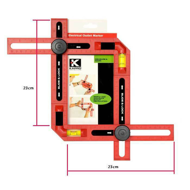 شابلون اندازه گیری کد 318، از برند کاپرو است که این شابلون دارای بدنه ABS و دقت آب تراز 1 mm است. این ابزار اندازه گیری دارای 2 آب تراز برای تراز و شاقول کردن و 2 گونیای درهم قفل شونده با قابلیت تنظیم آسان است. این شابلون کاپرو دارای قابلیت اندازه گیری و علامت گذاری روی دیوار برای نصب خروجی ها و پریزهای برق است.