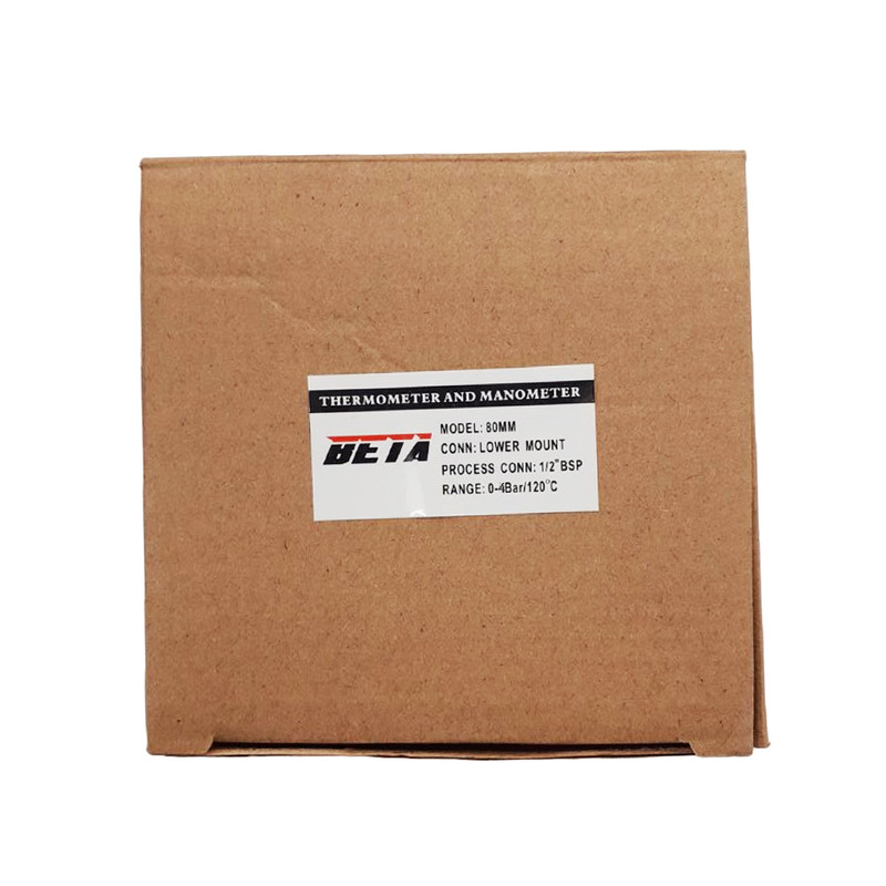 دامنه سنجش 0 تا 120 درجه سانتی گراد و 0 تا 4 بار ، سایز اتصال 1/2 اینچ ، صفحه 8 سانتی متری ، جنس اتصال برنجی