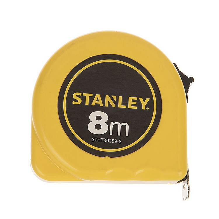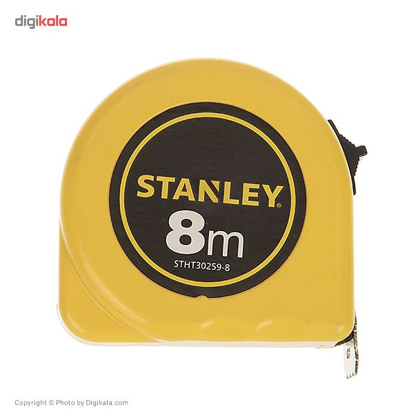 محصولی که در تصویر مشاهده میکنید متر فلزی شرکت معتبر «استنلی» (Stanley) است. این متر مدل (STHT30259-8) نام دارد و محصولی مناسب برای قرار گیری در کیف یا جعبهی ابزار محسوب میشود. این محصول طولی برابر 8 متر داشته و همانگونه که ذکر شد از نواری فلزی برخوردار است. این نوار فلزی کیفیت ساخت بالایی دارد و در کنار برخورداری از استحکام بالا، انعطافپذیر بوده و به راحتی نمیشکند. اعداد روی نوار این متر بر حسب سانتیمتر و در یک سمت آن درج شده است. تیغهی این متر عرضی برابر 25 میلیمتر دارد. نوار فلزی متر فوق درون بدنهی پلاستیکی و مستحکم متر قرار میگیرد و مانع از آسیب دیدن آن در برابر ضربه میشود. در قسمت ابتدای تیغهی متر قلابی فلزی قرار دارد که با کمک آن اندازهگیری برای کاربر راحتتر شده است. این محصول دارای قفل بوده که میزان طول اندازهگیری شده را میتوان با آن مشخص کرد و مانع از جمع شدن نوار فلزی میشود. محصول فوق کیفیت قابل قبولی دارد و از دقت بالایی برخوردار است.