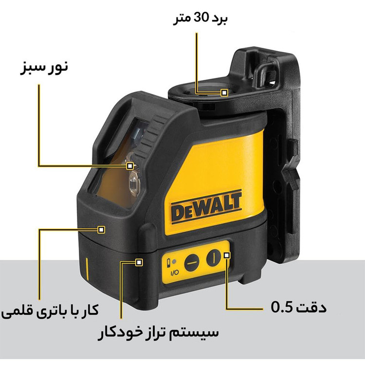 باتری , دارای سیستم تراز خودکار , قابلیت نصب روی پایه , قابلیت نمایش خط , نمایش خط لیزر افقی , نمایش خط لیزر عمودی