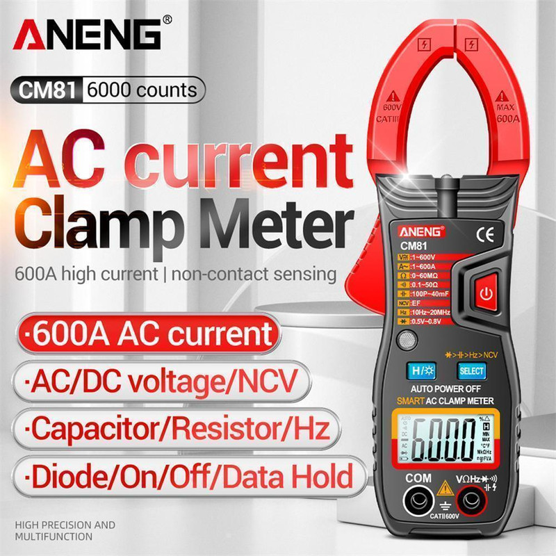مولتی متر/ کلمپ متر CM81 مارک ANENG یک آمپرمتر AC/DC با امکانات یک مولتی متر برای اندازه گیری پارامترهای الکتریکی است.