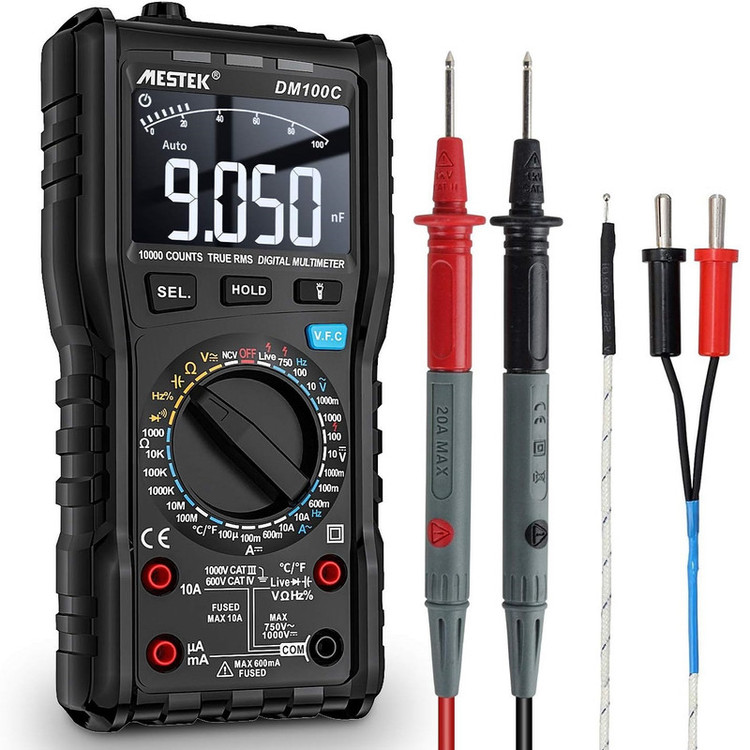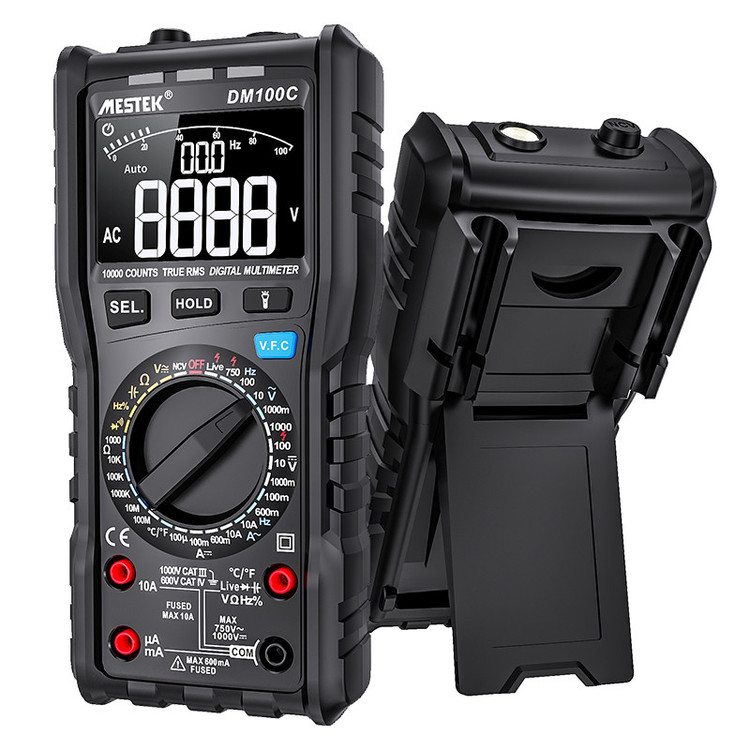نمایش تعداد 10000 ، تشخیص ولتاژ AC غیر تماسی. بررسی خودکار دیود یا تداوم ، Live تشخیص خط، تست تبدیل فرکانس ولتاژ AC، Fuse Burn Alarm، چراغ قوه ، پراب K-Type برای تست TEMP ، دابل فیوز ، دارای قاب سیلیکونی بسیار باکیفیت و مقاوم