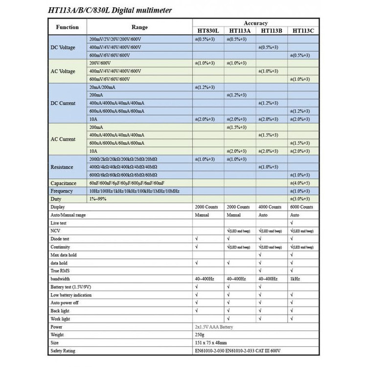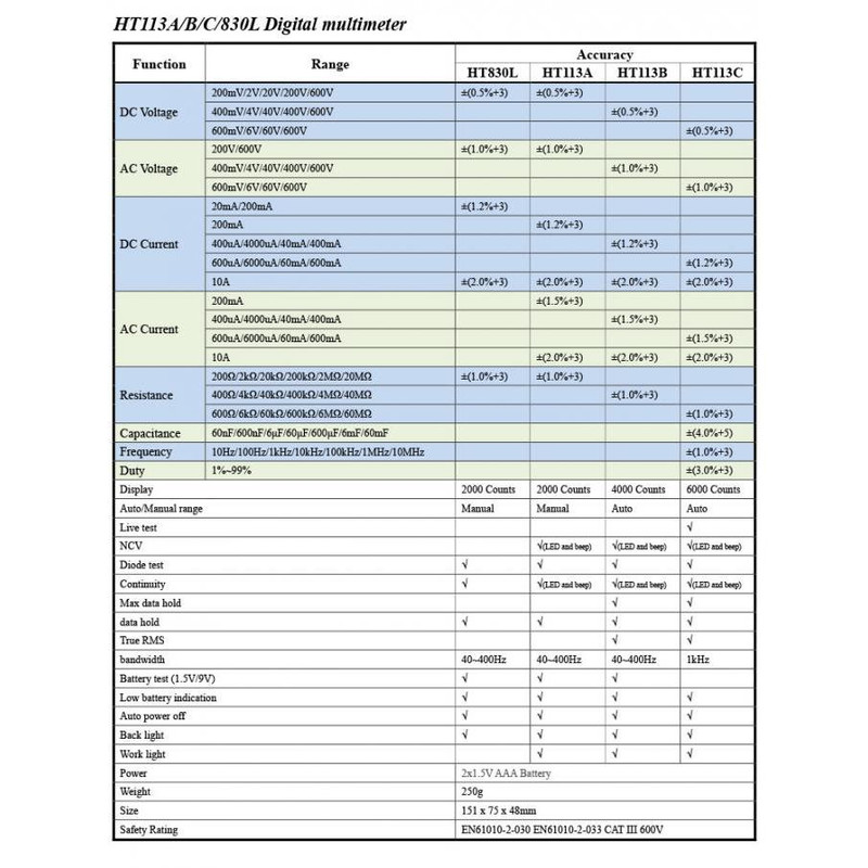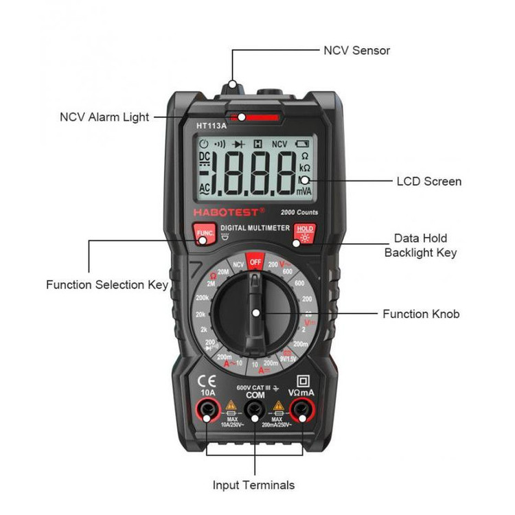 200Ω/2KΩ/20KΩ/200KΩ/2MΩ/20MΩ