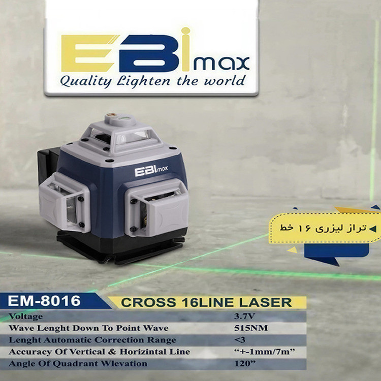 تراز لیزری ابی مکس مدل EM-8016 ، ابزاری حرفهای برای اجرای دقیق و سریع در پروژههای ساختمانی ، دکوراسیون داخلی و نصب تجهیزات است . این مدل با قابلیت نمایش 16 خط لیزری در جهات مختلف ، امکان تراز کردن کامل در محیطهای کاری را فراهم میکند .