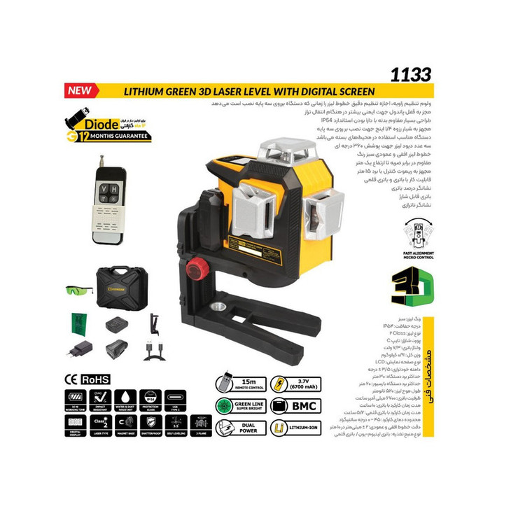 تراز لیزری کنزاکس مدل 1133 نور سبز 3D