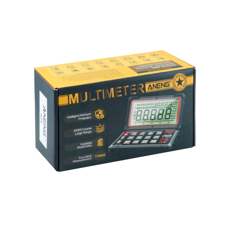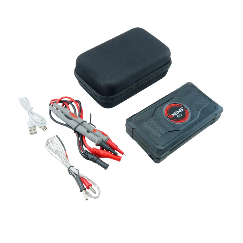 اقلام همراه مولتیمتر ANENG 623 پرابهای اندازهگیری کابل شارژ Type-C دفترچه راهنما کیف زیپ دار