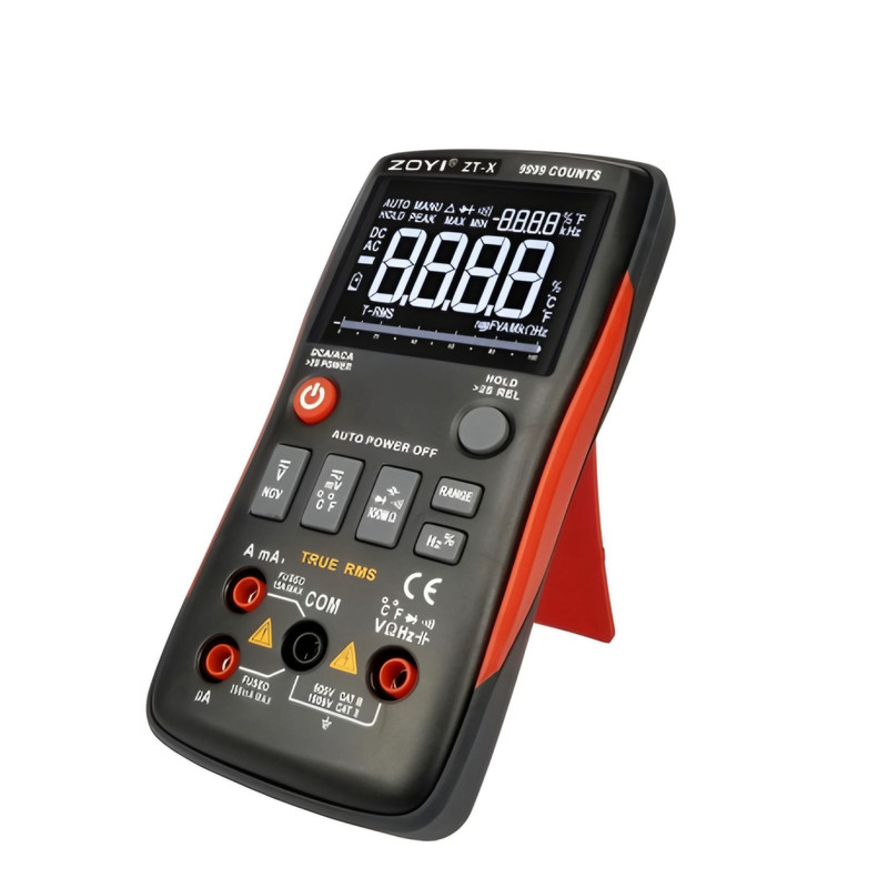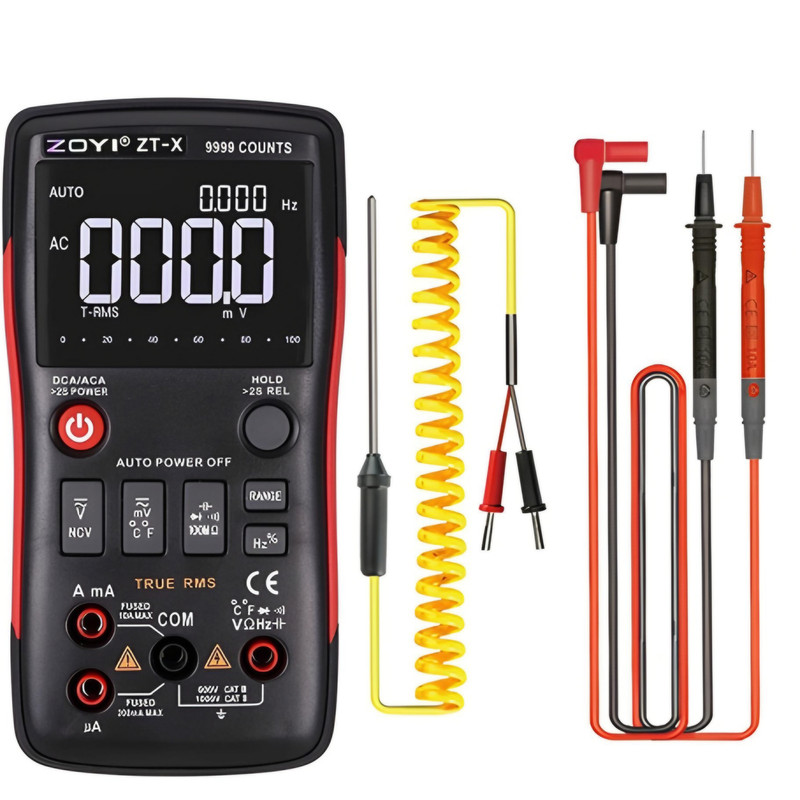 مولتیمتر دیجیتال اتورنج ZOYI مدل ZT-X یک ابزار دقیق و کارآمد برای اندازهگیری انواع پارامترهای الکتریکی از جمله ولتاژ AC/DC، جریان AC/DC، مقاومت، ظرفیت و فرکانس است. این دستگاه با بهرهگیری از قابلیت اتورنج، کاربری آسان و سریع را برای کاربران فراهم میکند و به شما امکان میدهد بدون نیاز به تنظیم دستی، مقادیر مختلف را اندازهگیری کنید. صفحهنمایش بزرگ LCD با وضوح بالا و نور پسزمینه، امکان خواندن دقیق مقادیر در محیطهای کمنور را فراهم میکند. ZT-X همچنین دارای قابلیتهای ویژهای مانند تست دیود، تداوم و تشخیص ولتاژ بدون تماس (NCV) است که آن را به ابزاری کامل برای تکنسینها و مهندسان تبدیل کرده است.