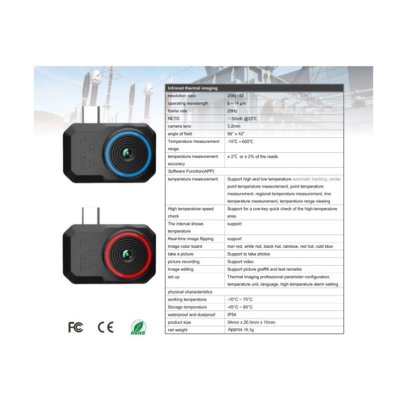 پشتیبانی از ردیابی خودکار دمای بالا و پایین، اندازهگیری دمای نقطه مرکزی، اندازهگیری دمای نقطهای، اندازهگیری دمای منطقهای، اندازهگیری دمای خط، مشاهده محدوده دما دارد . قابلیت گرفتن عکس و ضبط ویدئو نیز دارد .
