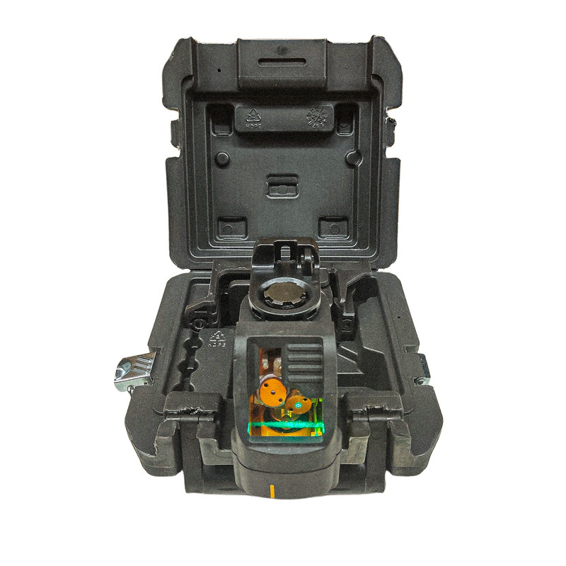 سیستم نمایش دوبعدی با نور لیزر سبز، قابلیت خودترازی با امکان چرخش ۱۸۰ درجه، متعلقات کامل با قابلیت نصب بر روی سهپایه. لطفا هنگام جا زدن باتری مثبت و منفی باتری دقت کنید و بعد از جا زدن باتری با نگه داشتن دکمه تراز به مدت سه ثانیه، تراز روشن میشود.