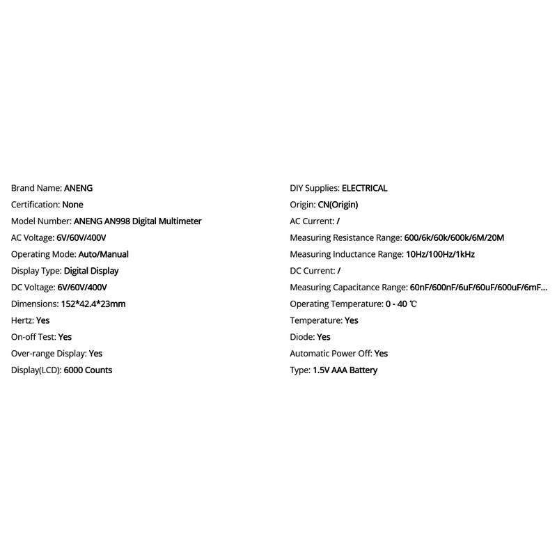 گسترهیابی اتوماتیک , تست دیود , تست خازن , تداوم قابل شنیدن , RMS صحیح