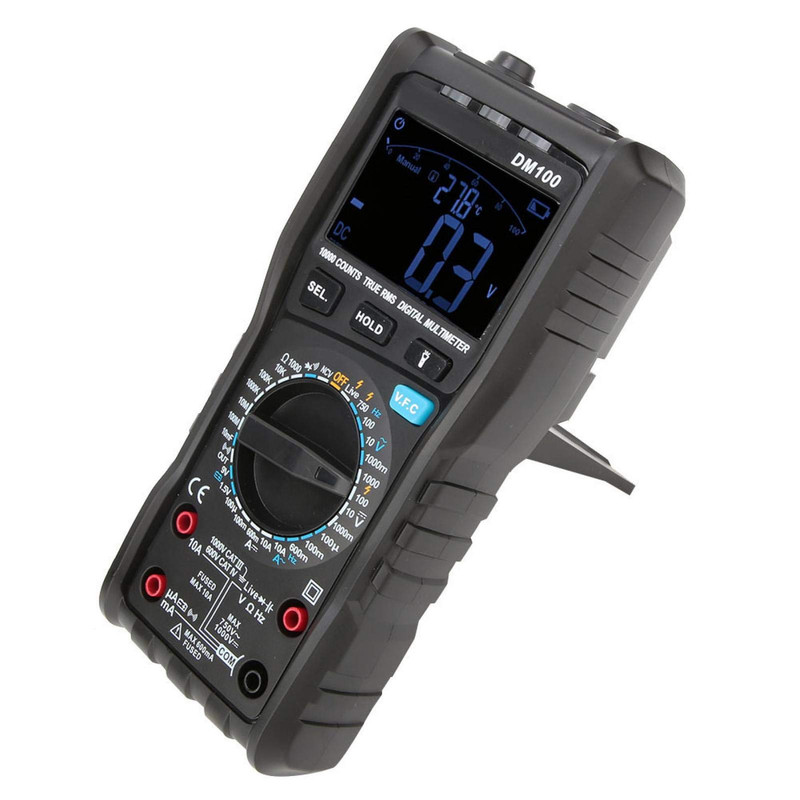 پاسخ با دقت بالا 0.5 ثانیه، یادآوری سوختن فیوز، صفحه نمایش HD، 10000 شمارش، محافظت از سقوط پوسته، اندازه گیری ولتاژ NCV، مس خالص ایمنی خطی، اندازه گیری دما، اندازه گیری ولتاژ NCV، تراشه هوشمند + فیوز دوبل