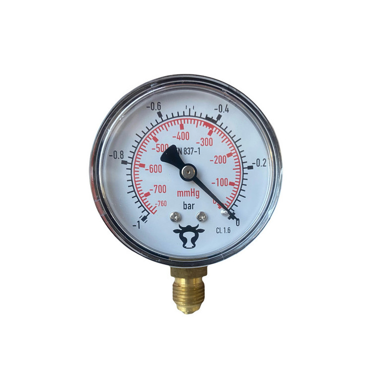 درجه خشك خلاء(وكيوم) 0-بار1-/760-mmHg صفحه 6 سانتي متري اتصال برنجي از زير رزوه 1/4 اينچ لوله بدنه فلزي صفحه طلقي