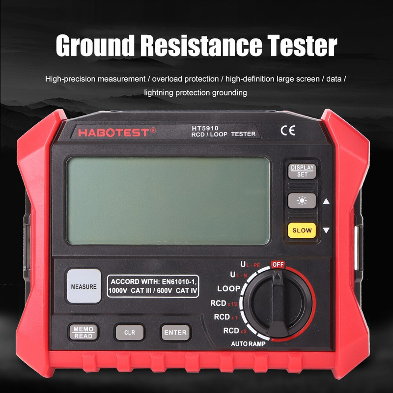 دستگاه RCD / LOOP تستر مدل HT5910 با قابلیت اندازه گیری مقاومت حلقه بسته و ولتاژ و اندازه گیری فرکانس و امکان تست سریع، ساخت کمپانی HABOTEST می باشد که از طریق شرکت برازنده تجارت وارد شده است. بازه اندازه گیری مقاومت حلقه بسته از 0.1 تا 2000 اهم می باشد و بازه ولتاژ متناوب 0 تا 440 ولت و فرکانس 45 تا 65 هرتز می باشد. دستگاه تستر نشتی جریان هابوتست دارای حافظه داخلی 1000 مقدار می باشد وبا دارابودن نرم افزار ،قابلیت اتصال به کامپیوتر با کابل USB را دارد نمایش همزمان چندین مقدار، امکان تست سریع و آهسته و امکان اندازه گیری زاویه فاز 0 تا 180 درجه از دیگر قابلیت های این دستگاه حرفه ای می باشد.