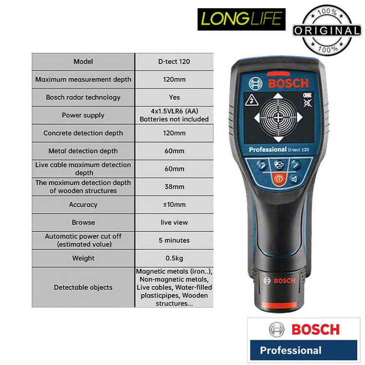 4 عدد باتری 1.5 ولت قلمی ( در صورت تمایل به جای باتری قلمی میتوانید از یک عدد باتری 12 ولتی لیتیومی بوش استفاده کنید)