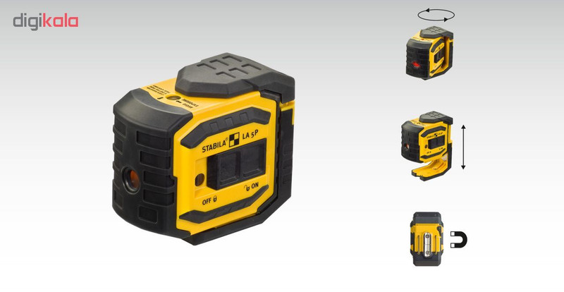 تراز لیزری نقطه ای استبیلا یکی از دقیقترین و محصولات 5 نقطه موجود در بازار می باشد این دستگاه خود تراز با پردازش 5 نقطه لیزری با زاویه 90 درجه امکان مناسبی جهت اجرا و یا نظارت همراستایی خطوط را به کار بر می دهد لازم بذکر است پردازش 5 نقطه درجهات مختلف ( بالا ، پایین، چپ ،راست و روبرو ) با دقت و وضوح بالا صورت می پذیرد. آهنربای پشتی دستگاه به قوس مخصوص این امکان را به کاربر میدهد تا دستگاه بر روی انواع پروفیل های فلزی ، لوله ها و لبه های تیز با اطمینان کامل نصب گردد. همچنین رزوه 1/4 اینچی زیر دستگاه این امکان را میدهد تا دستگاه بر روی انواع سه پایه نصب گردد. قابلیت تغییر ارتفاع تا 5 سانتی متر در دستگاه STABILA LA-5P در محل نصب شده این امکان را می دهد تا براحتی بتوان نقطه مورد نظر کاربر با نقطه پردازش شده توسط دستگاه براحتی برروی یکدیگر قرار گیرد و در انتقال نقطه از زمین به سقف نیاز به نصب دستگاه بر روی سه پایه نباشد. از این دستگاه می توان جهت پیاده سازی زاویه 90 درجه (گونیا کردن)، هم راستا کردن خطوط، انتقال نقاط در جهات مختلف، پارتیشن بندی ، نصب انواع قاب درب و پنجره ، کناف کاری و ... استفاده نمود.