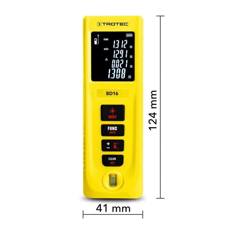 باتری قلمی , Class 2 , صفحه نمایش 4خطی , قابلیت اندازهگیری حجم , قابلیت اندازهگیری زاویه , قابلیت اندازهگیری مساحت , قابلیت اندازهگیری فاصله , واحد اندازهگیری متر , واحد اندازهگیری فوت , قابلیت خاموش شدن خودکار