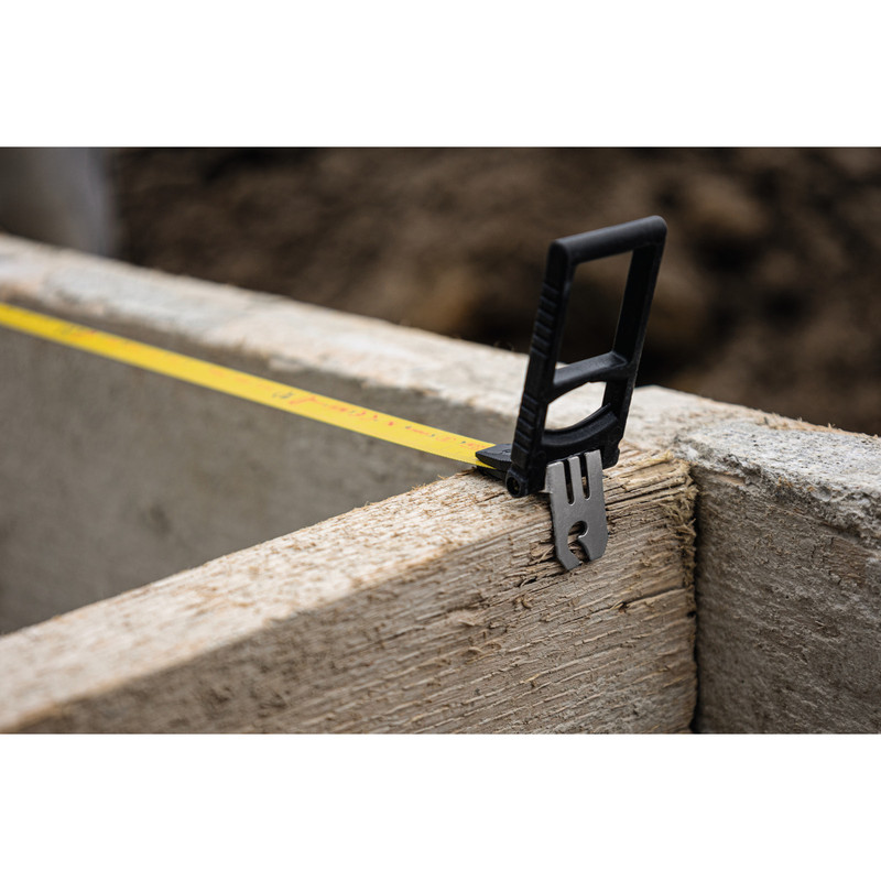 در ابتدای این متر زائده ای جهت اتصال متر به انواع سطوح و لبه ها و یا اتصال به پیچ و میخ قرارداده شده است تا کاربر بدون کمک از دیگران بتواند اندازه گیری دقیقی را بصورتی فردی انجام دهد >