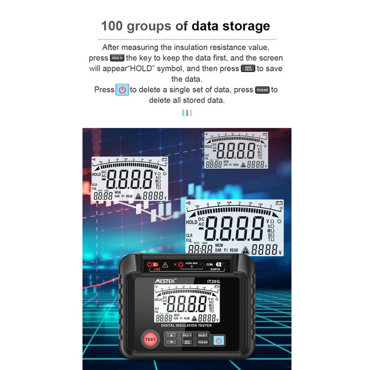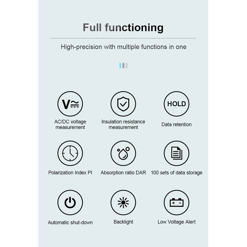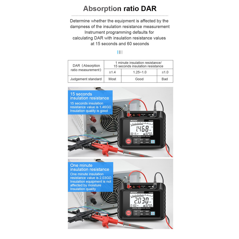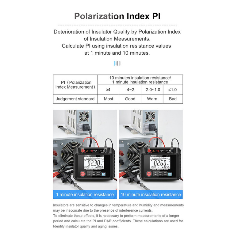 تست سلامت عایق کابل، موتور، ترانسفورماتور، ژنراتور و اندازهگیری PI و DAR، حفاظت اضافهولتاژ، نمایش ولتاژ لحظهای