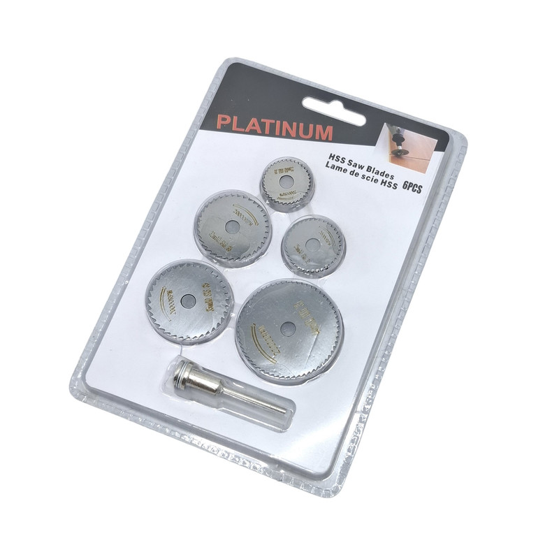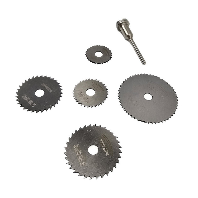 از تیغه های HSS برای برش انواع چوب ، پلاستیک و فلزات نرم و در حجم کم استفاده می شود . محصول فوق مناسب برای برش چوب است. این محصول از 5 تیغه و یک رابط تشکیل شده است که از هریک از تیغهها برای برش چوب در سایزهای مختلف استفاده میشود. از این مجموعه عمدتا برای فرزهای حکاکی مینیاتوری استفاده می شود. ذکر این نکته ضروری است که این مجموعه برای کارهای ظریف مناسب بوده و از آن نمیتوان انتظار برش در حجم و ضخامت بالا را داشت. به دلیل کیفیت ساخت بالا نسبت به نمونه های مشابه، توانسته مشتریان زیادی را برای خود داشته باشد . برای کار با این تیغه ها استفاده از عینک ایمنی توصیه میشود. این محصول دارای 5 تیغه در سایزهای 22، 25، 32، 35 و 44 میلیمتر است. همچنین وزن کلی آن 55 گرم است.