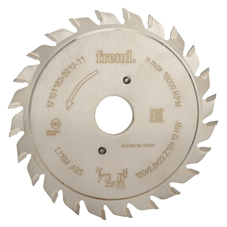 تیغ اره خط زن دو تکه جهت برشMDF قطر کلی اره 120 میلی متر تعداد دندانه 24 ضخامت الماسه 2.8 میلی متر شفت 20 میلی متر