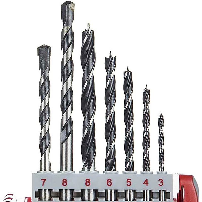 شماره: مته فلز در سایزهای ۲، ۲٫۵، ۳، ۴، ۵ و ۶ مته چوب در سایزهای۳، ۴، ۵، ۶ و ۸ مته مصالح ساختمانی در سایزهای ۴، ۵، ۶، ۷ و ۸