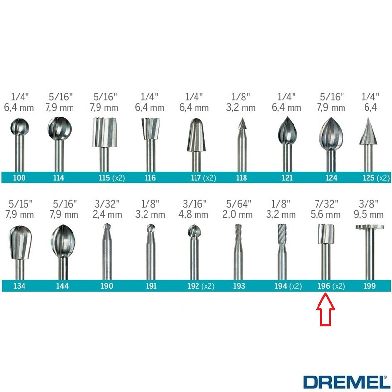 - دارای 2 عدد سری فرز مینیاتوری مدل 196 با قطر شفت 3/2 میلیمتر - دارای نوک استوانه ای شکل به قطر 5/6 میلیمتر - دارای قابلیت کارکرد با سرعت حداکثر 30000 دور در درقیقه