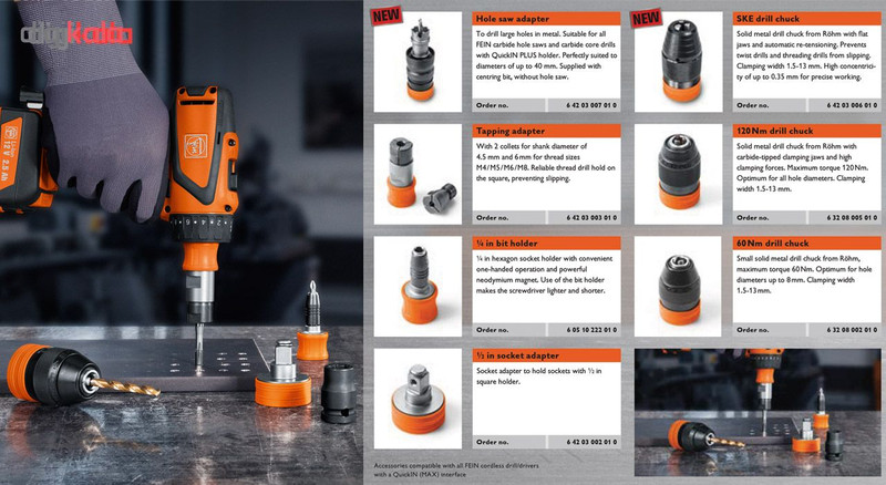 سازگار با تمامی دریل/پیچ گوشتی های فاین با رابط QuickIN و یا QuickIN MAX