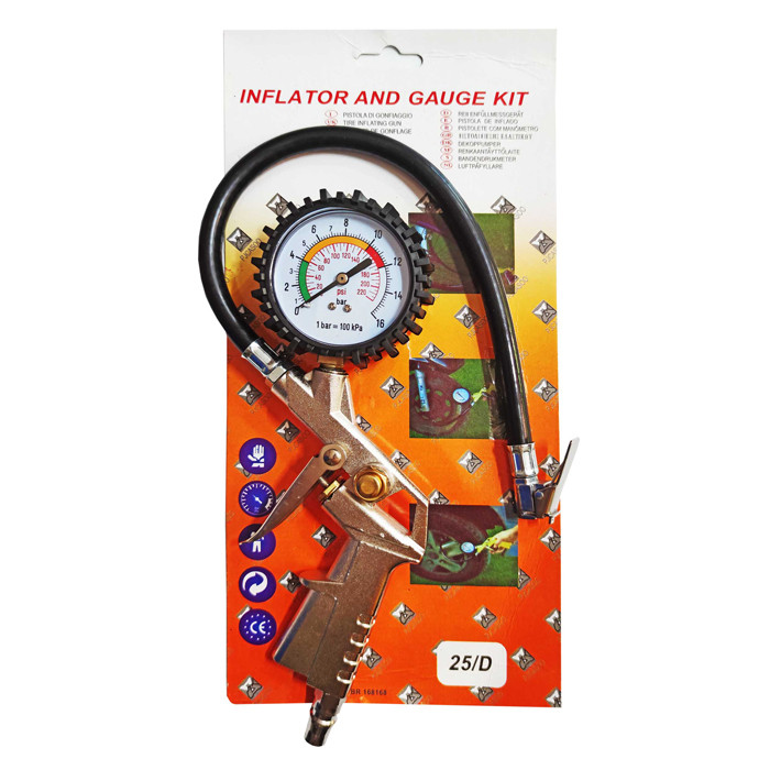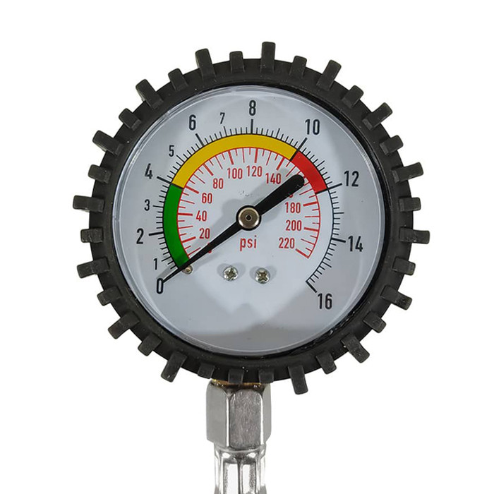 قابلیت پر و خالی کردن تایر دارای گیج دقیق و ضد ضربه عقربهای حداکثر فشار قابل اندازهگیری 220 بار دارای بدنه از جنس آلومینیوم ضدزنگ