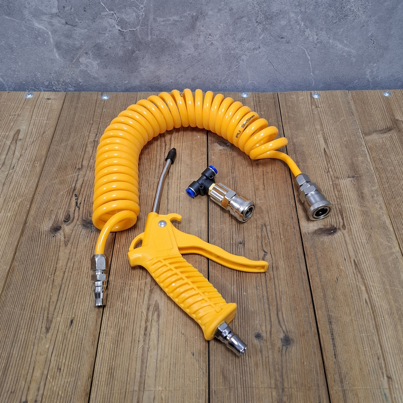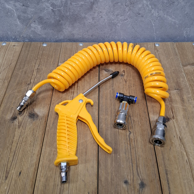 ابتدا تفنگی باد را به پمپ باد وصل میکنیم سپس سر دیگر آن را به باد پاش وصل میکنیم و از آن استفاده میکنیم .