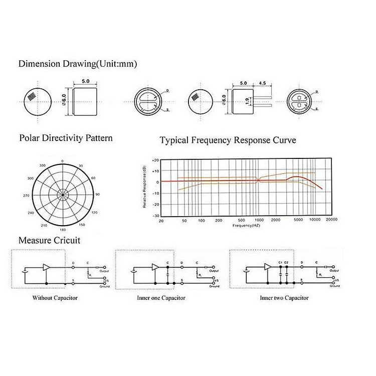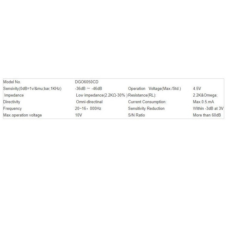 قابلیت ها: میکروفن سایز 6x5 میلیمتر نوع خازنی