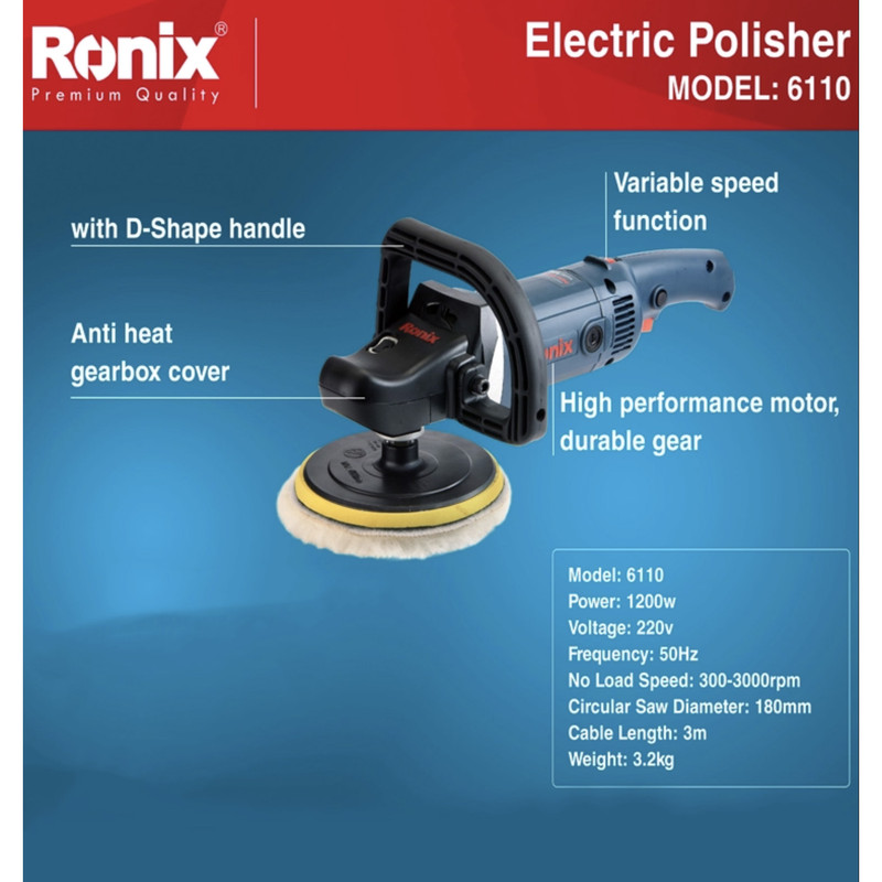 - موتور پر قدرت و گیربکس با دوام - قابلیت تنظیم دور در 6 حالت مختلف - همراه با صفحه آلومینیومی پولیش کاری - درپوش پلاستیکی ضد حرارت جهت سهولت در پولیش کاری