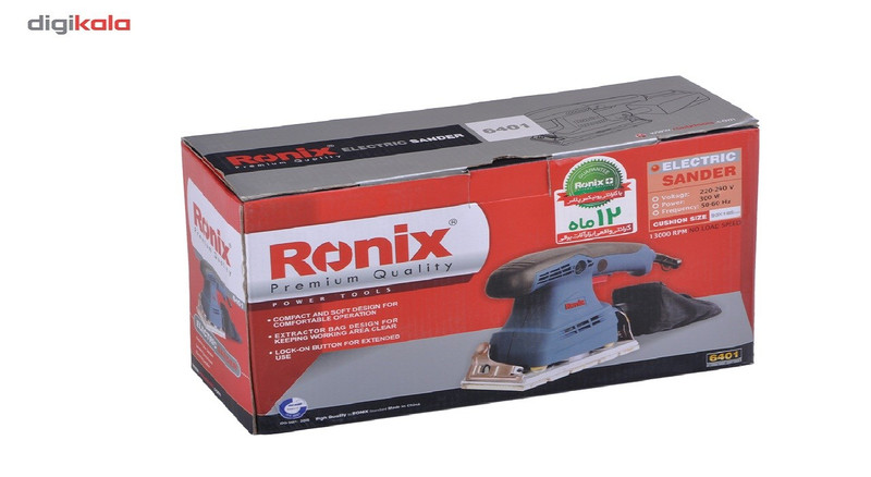 سنباده زدن یکی از فرایندهایی است که معمولا در بخش پایانی کار انجام میشود و موجب یکدست شدن آن میگردد. برای این منظور میتوانید از دستگاه سنبادهزن استفاده کنید. محصول فوق یکی از انواع این دستگاهها بوده که کار سنباده زدن را بسیار آسان نموده و به آن سرعت میبخشد. این دستگاه برقی موتوری 300 واتی دارد که به دستگاه این امکان را میدهد با سرعتی بالغبر 13000 حرکت در دقیقه لرزش داشته باشد. شرکت «رونیکس» برای این محصول از یک قفل سوییچ استفاده کرده تا بدون نگه داشتن شستی آن، دستگاه را در حالت روشن قرار دهید. به همراه این دستگاه سنبادهزن یک کیسهی جمعآوری براده قرار دارد تا محیط اطراف کمتر کثیف شود؛ از سویی دیگر 3 ورق صفحه سنباده با زبری های متفاوت برای نصب روی دستگاه عرضه شده است. شرکت رونیکس این محصول را با نام «6401» به بازار عرضه میکند.