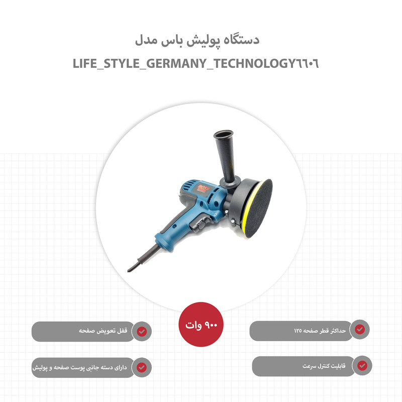پولیش پوست بره , پولیش سمباده , تامین انرژی با برق , قابلیت کنترل سرعت , قفل تعویض صفحه