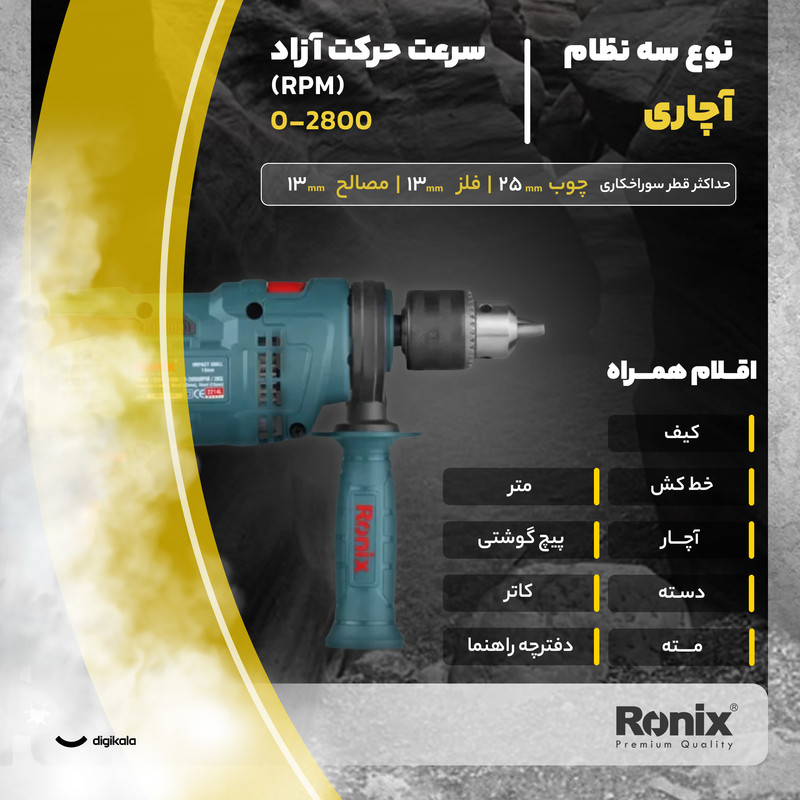 دریل چکشی رونیکس مدل RS 0001 مجموعه 22 عددی