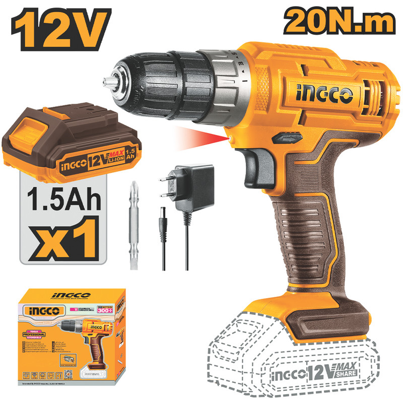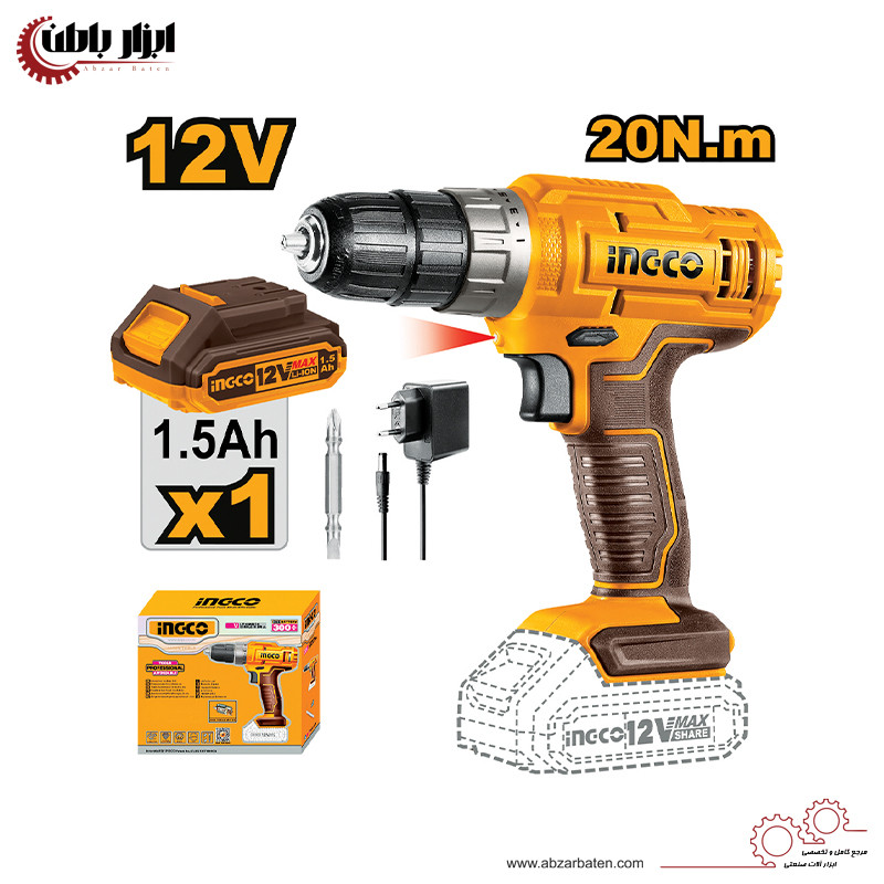 دریل پیچ گوشتی شارژی 12 ولت اینکو مدل CDLI-1218-12V