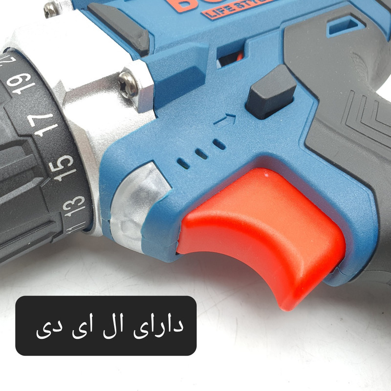 دارای باتری لیتیوم یونی , دارای لامپ LED , قابلیت تعویض باتری , قابلیت کنترل سرعت