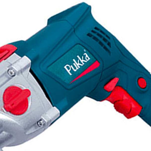دریل D13221 یکی از محصولات شرکت پوکا Pukka کشور چین است. این دستگاه یک دریل 2 ضربه ای گیربکسی است. پوسته برای راحتی کاربر به صورت ارگونومیک طراحی شده است. جهت بالا بردن عملکرد دستگاه از گیربکس با آلیاژ مرغوب استفاده شده است. دارای سه نظام آچاری مقاوم است. ظرفیت سوراخکاری این دریل تا قطر 13 میلی متر است. دارای شاسی تغییر دور بوده و سرعت آن قابل تنظیم است. دریل دارای کلید الکترونیکی دیمردار است. دارای یک کلید جهت تنظیم میزان دور دستگاه است. مجهز به شاسی چپ گرد و راست گرد است. دریل پوکا دارای دکمه قفل کن کلید در حالت روشن است. دریل دارای شاسی تغییر عملکرد دستگاه در دو حالت چکشی و ساده است.