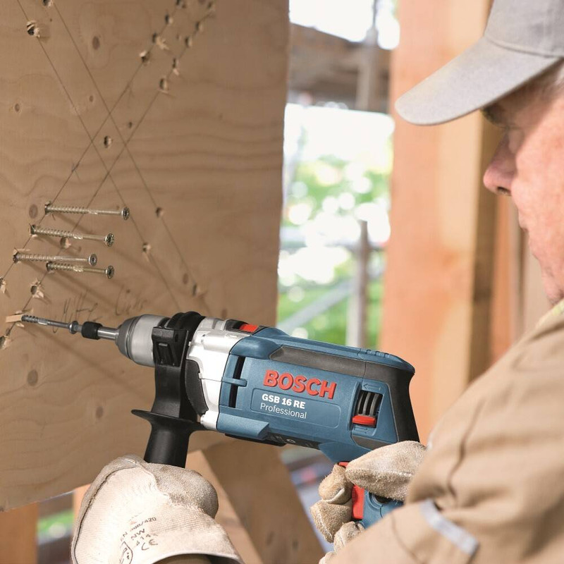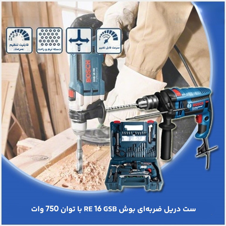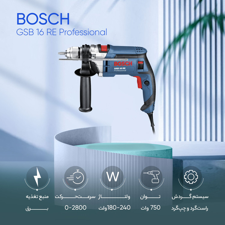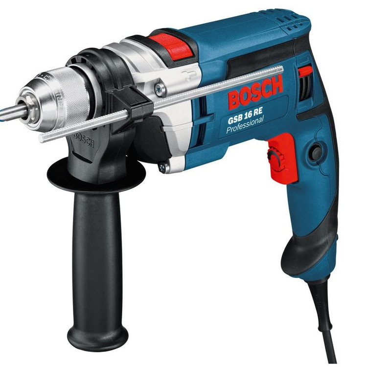 دریل GSB 16 RE تولیدی شرکت صاحب سبک بوش در رده دریل های ضربه ای دنیا در نوع خود بی نظیر است. این دریل دارای قدرتمندترین سیستم تنظیم سرعت است .به دلیل استفاده از تکنولوژی گشتاور ثابت بر خلاف دریل های مشابه در این دریل گشتاور و قدرت کاهش پیدا نمی کند و این خصوصیت این دریل را جز مناسب ترین انتخاب ها برای سخت ترین کارها محسوب کرد. موتور این دستگاه با عملکرد بالای 750 وات با گشتاور بالا و سیستم پیشرفته پبرفشنال مخصوص بوش برای سنگین ترین کاربردها و انتظارات در دره خود بالاترین کیفیت را به کاربر ارائه می نماید، دریل چکشی GSB 16 REجهت باز و بسته کردن پیچ و همزن مناسب می باشد. یکی از قابلیت ویژه این دستگاه چرخاننده 360 اتصال کابل به دستگاه می باشد که این اطمینان را به کاربر میدهد که هیچ زمان کابل دستگاه پیچ نخورده و از قسمت اتصال به دستگاه مشکل قطع شدن چیدا نخواهد کرد .اختصاص سه نظام خودکار 13 میلیمتری این امکان را به کار برخواهد داد تا در کمترین زمان و آسان ترین حالت ممکنه اقدام به تعویض مته و یا سر پیچ گوشتی نماید.تمام موارد بالا باعث شده این مدل دریل که توسط بزرگترین شرکت تولید ابزار برقی دنیا تولید شده در نوع خود بی رقیب باشد .