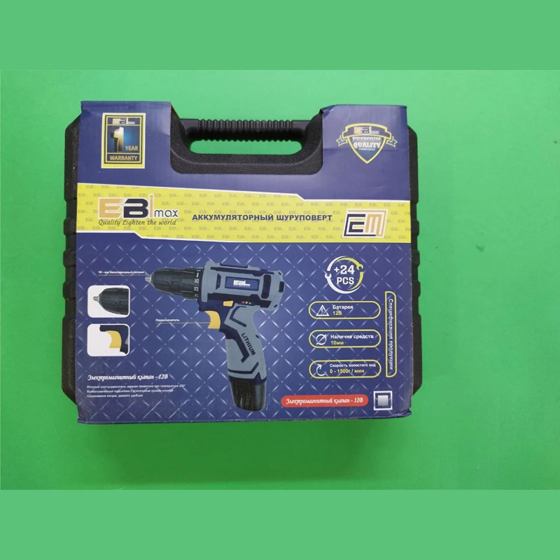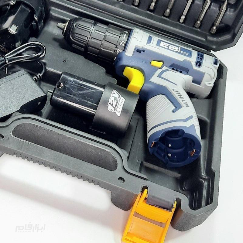 دریل پیچ گوشتی شارژی 10میلیمتری 12ولت ابی مکس مدل EM-12V مجموعه 24 عددی