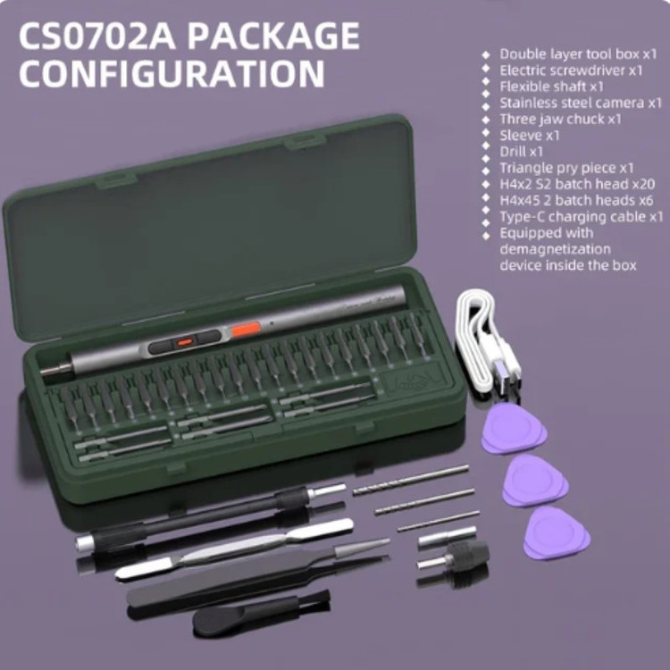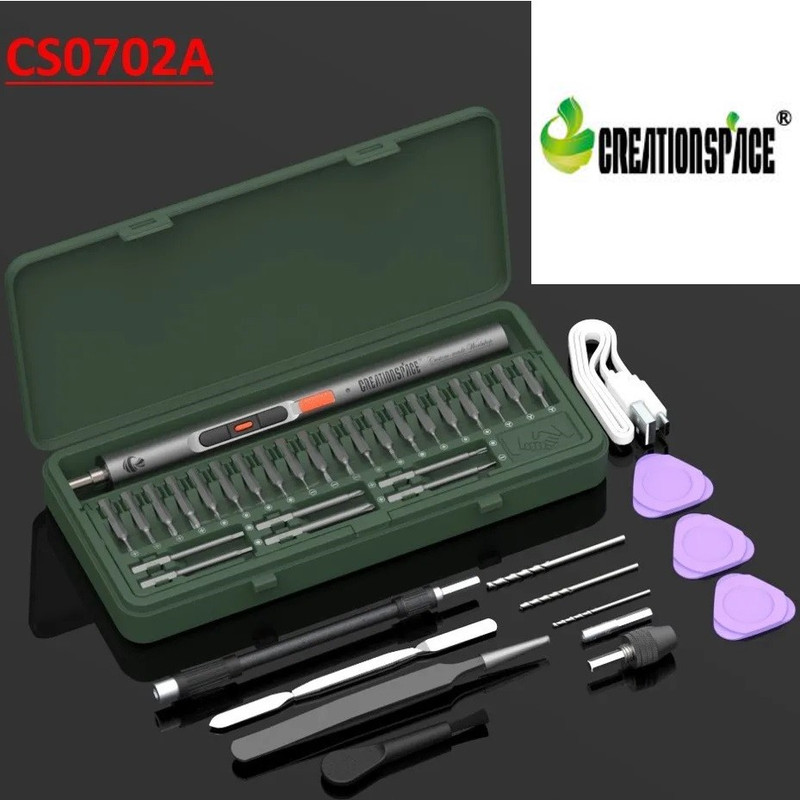 پیچ گوشتی و دریل شارژی الکترونیکی کرییشن اسپیس مدل CS0702A مجموعه 40 عددی