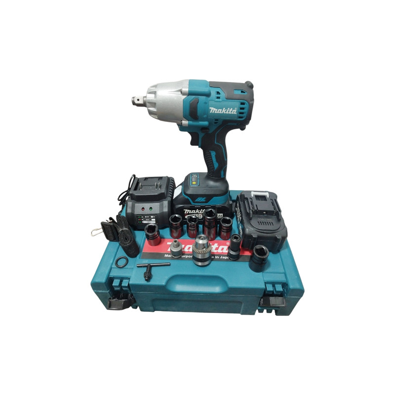 ۲ عدد باتری - شارژر -دفترچه راهنما -6 عدد بکس 22-17-18-21 -22 - 19 - سه نظام آچارخور - رابط سه نظام به دستگاه - کمربند -رابط بکس به مته خور فشاری - جعبه BMC مقاوم - آچار باز و بسته کردن سه نظام - واشر پلاستیکی -دارای دسته حمل و نقل