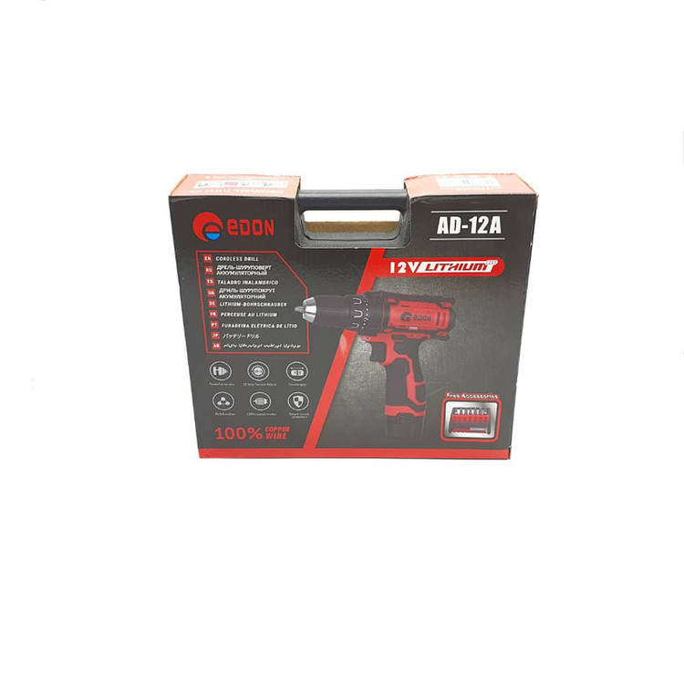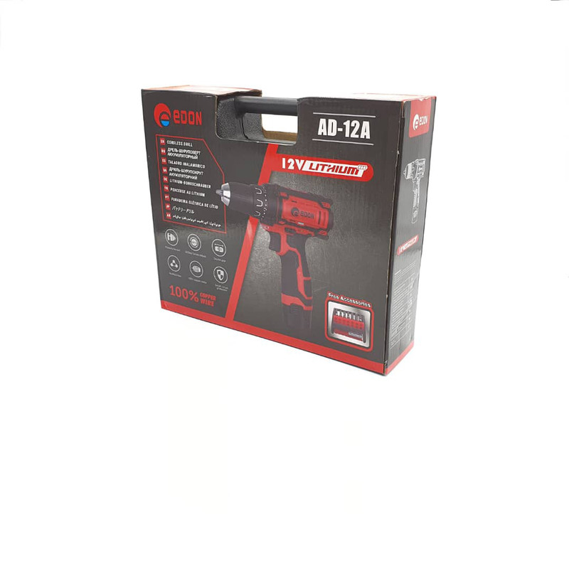این دریل شارژی ساخت شرکت ادون مدل AD-12A می باشد که ظرفیت باطری های ان به 2 A/H می رسد