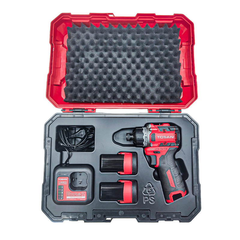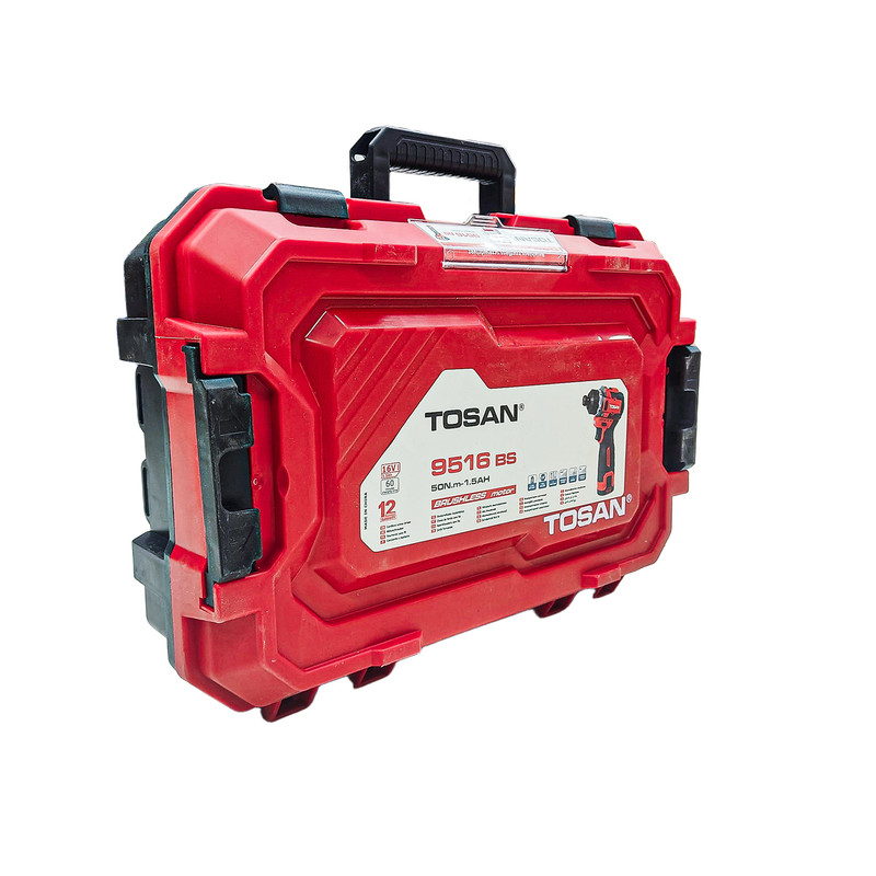 دو عدد باتری لیتیوم-یون 16 ولت 2 آمپر، یک عدد شارژر، یک عدد کیف ضد ضربه