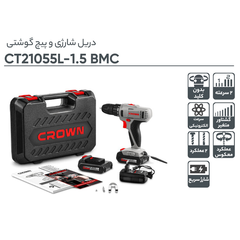 دریل پیچ گوشتی شارژی کرون مدل CT21055L BMC