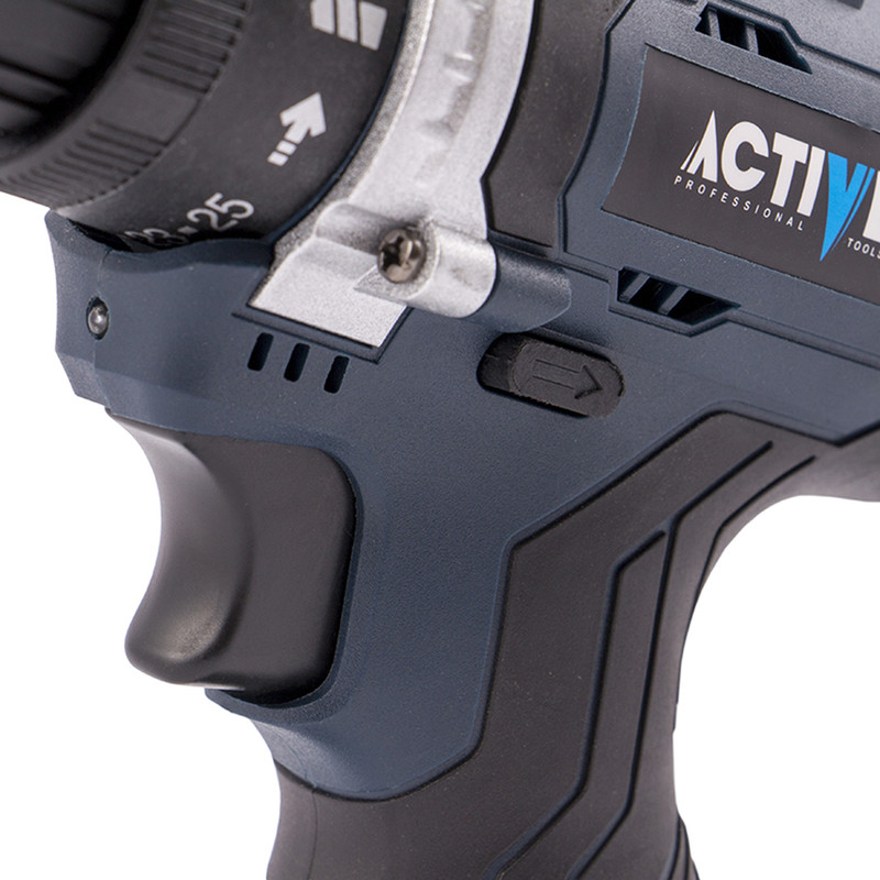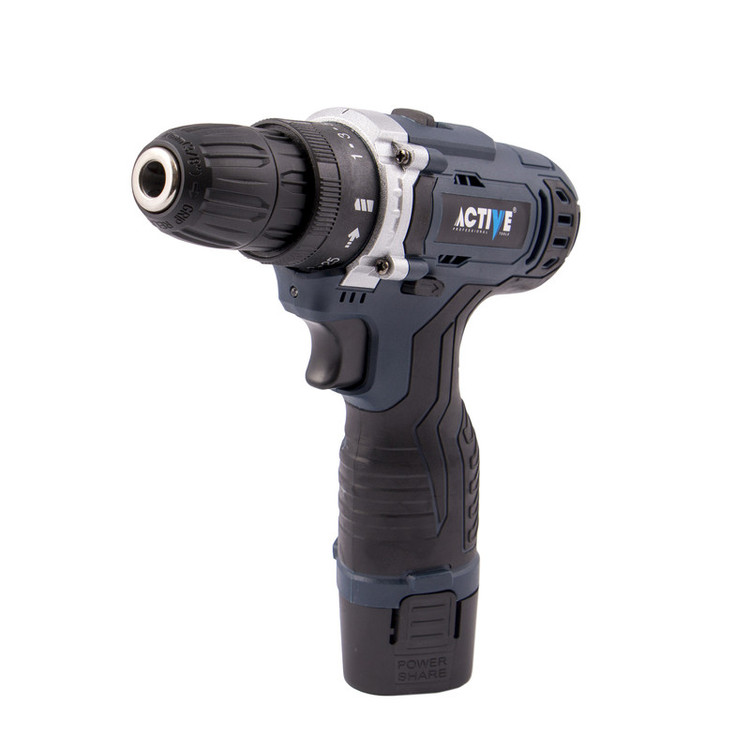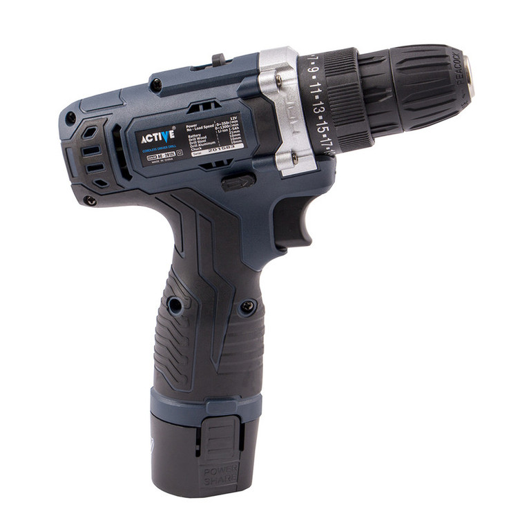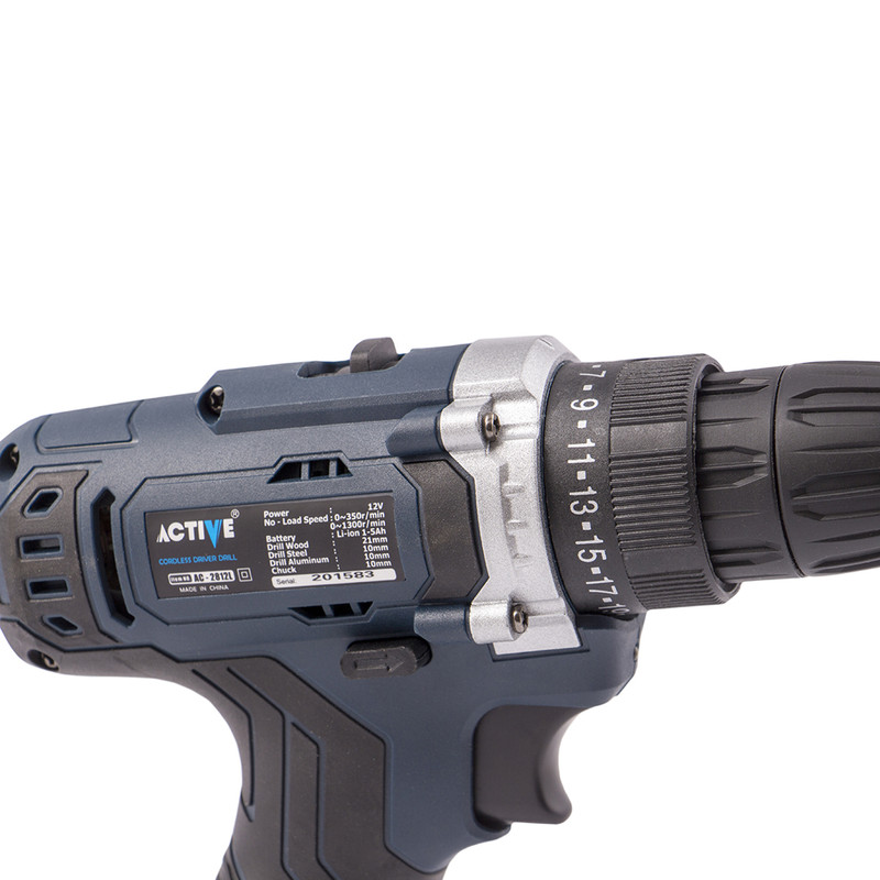 دریل شارژی یکی از پرکاربردترین ابزار در مشاغل گوناگون است. دریل شارژی از یک موتور کوچک از نوع DC، یک گیربکس سیاره ای، یک ترکمتر و یک باتری تشکیل شده است. دریل شارژی 12ولت لیتیوم اکتیو مدل AC-2812L یکی از مجموعه دریل های شارژی اکتیو با قدرت بالا میباشد.دریل پیچ گوشتی شارژی 12ولت اکتیو مدل AC-2812L دارای باطری لیتیوم با کیفیت میباشد. به طور کل باطری های ليتيوم دارای جثه کوچکتر، ارزش بيشتر،مدت نگهداري شارژ بيشتر و درصورت استفاده نكردن طولاني مدت خيلي دير تر خالي ميشود.به طور كلي باطريهاي ليتيوم نسل جديد تر باتري با كارايي بيشتر ميباشند. در دریل پیچ گوشتی های شارژی اکتیو از باطری با کیفیت استفاده شده که در عمر باطری و عملکرد آن بسیار دخیل است.دریل شارژی 12ولت اکتیو به ما امکان انتخاب حالت دریل یا پیچگوشتی را میدهد دریل شارژی12ولت اکتیو دارای ترکمتر داخلی قابل تنظیم جهت باز و بسته نمودن پیچ ها میباشد (چنانچه پیچی ظریف و حساس میباشد و نیاز یه چرخاندن با قدرت کمتری میباشد (و یا بلعکس)، با استفاده از ترکمتر روی این دستگاه میتوان فشار گشتاور (پیچاندن) را تنظیم نمود. این کار باعث جلوگیری از بریدن پیچ و یا خورده شدن گل (سر) پیچ میشود). همچنین با قرار دادن حالت ترکمتر روی حالت دریل، میتوان شروع به سوراخکاری نمود. پس این دستگاه هم قابلیت پیچگوشتی بودن و هم قابلیت دریل را دارد.این دریل شارژی دارای کلید الکترونیکی و چپ گرد و راست گرد می باشد که برای باز کردن و بستن پیچ و دریل کاری در حالت چپ گرد و راست گرد استفاده میگردد.يك امكان خوب كه در دریل شارژی 12 ولت اکتیو وجود دارد، وجود لامپ LED میباشد که با وجود مصرف كم باعث ميشود در شب يا در زوايايي كه نور كافي وجود ندارد باز و بسته كردن پيچ و سوراخكاري با ديد مناسب انجام شود. در ساخت این دریل شارژی 12 ولت اکتیو از گیربکس فلزی باکیفت و مستحکم و بدنه بسیار ارگونومیک طراحی گردیده و به راحتی میتوان آن را در هنگام کار مهار کرد. دنده های با دوام و سخت کاری شده این دستکاه باعث بالا رفتن عمر مفید و مقاومت این دستگاه شده است. دریل شارژی 12ولت اکتیو دارای سه نظام اتوماتیک میباشد که دیگر نیازی به آچار جهت تعویض مته و یا سرپیچگوشتی نیست و این کار به راحتی بدون نیاز به آچار سه نظام انجام میشود.