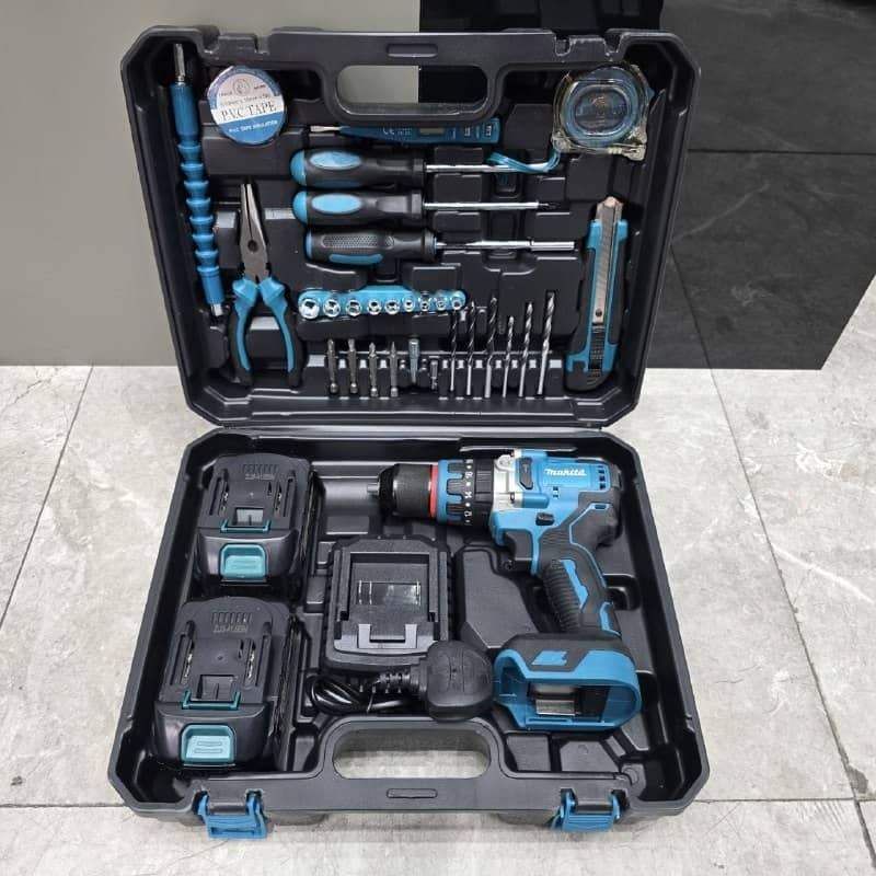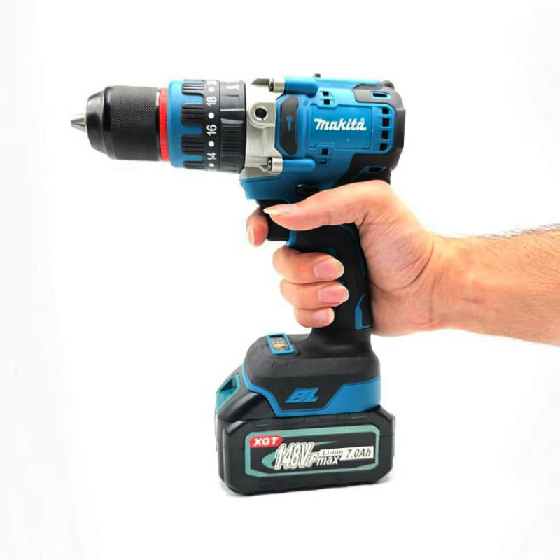 دریل شارژی گیربکسی چکشی '148 ولت طرح ماکیتا که این دریل با مارک طرح ماکیتا ارائه میگردد و طرح ماکیتا می باشد و تفاوتی با اصل آن دارد همچنان که از نظر قیمتی هم بسیار متفاوت می باشد این محصول که توسط ایران باس توزیع میگردد دارای مشخصات ذیل می باشد :گیربکسی و چکشی و ۱۴۸ ولت ۷ آمپر و کیفیت فوق العاده بالا و موتور براشلس و سه نظام تمام فلزی و سه نظام ۱۳ و نشانگر روی باتری و دو عدد باتری ۱۴۸ ولت لیتیوم و گیربکس دو دور قدرتمند و دور ۰ تا ۷۵۰ و ۰ تا ۱۱۵۰ دور بر دقیقه و قابلیت کنترل سرعت فشاری و دارای دیمر و چپگرد و راستگرد است و همچنین به همراه؛ دمباریک، متر ۳ متری، پیچ گوشتی دوسو و چهارسو سایز بزرگ، پیچ گوشتی نوک خور، مته آهن سایز ۵ و ۶ و ۸، مته دیوار سایز ۵ ،۶ و ۸، ۹, چسب برق، کاتر، فازمتر دیجیتال، که همه متعلقات در یک کیف BMC حرفه ای قرار دارند .