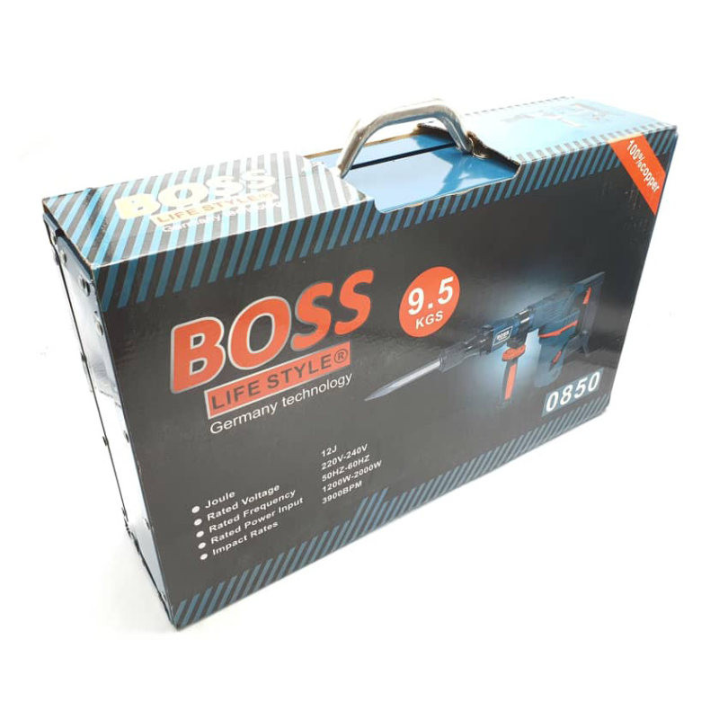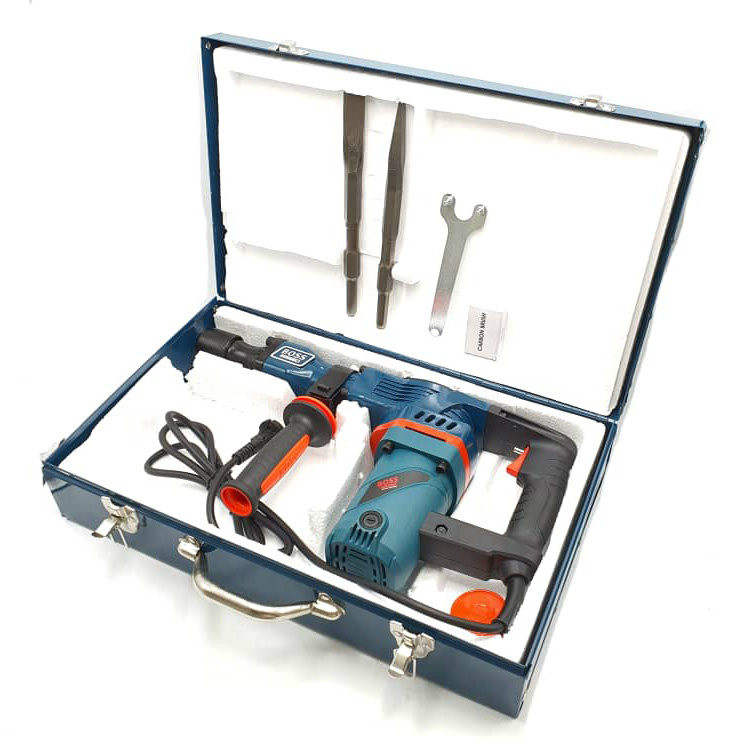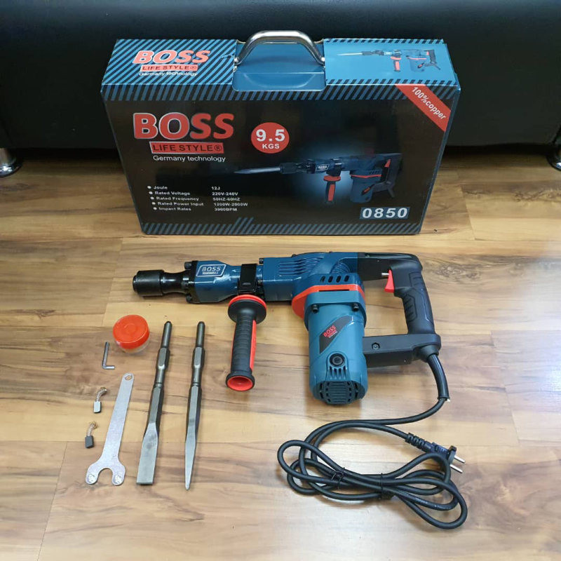محصول پیش روی شما چکش تخریب 9.5 کیلوی باس میباشد. این چکش تخریب با کیفیت بسیار مطلوب و تحت استانداردهای روز دنیا تحت عنوان چکش تخریب به بازار عرضه شده است منبع تغذیه این ابزار برق بوده و ولتاژ آن بین 220 تا 240 ولت است. قدرت موتور بالا و وزن مناسب این محصول باعث شده است تا در دسته ابزار آلات صنعتی قرار بگیرد و مصرف آن برای انواع پروژههای صنعتی و ساختمانی مناسب باشد چکش های تخریب و بتن کن باس BOSS یکی از ابزار های پرکاربرد جهت تخریب بتن و مصالح ساختمانی هستند. این ابزار به خاطر قدرت بالایی که در تخریب دارند بسیار کاربردی و مناسب برای استفاده در پروژه های وسیع و سنگین می باشند. این گروه از ابزار آلات( چکش تخریب 9.5 کیلویی باس ) از بزرگترین های خانواده ابزار آلات برقی میباشند و عمده وظیفه آنها ایجاد تخریب بر روی بناهای ساختمانی میباشد. از شاخصترین نکات این سری از ابزار آلات میتوان به سنگین و پر قدرت بودن آنها اشاره کرد، اساس ساخت این نوع از ابزار آلات بر مبنای وظیفه آنها، که تخریب سطوح غیر فلزی مانند دیوارها و … است استوار میباشد.